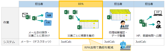 総合防災課の被害情報集約業務のロボット。年間250時間ほどの労働時間を削減