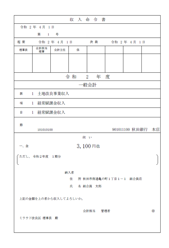 各種命令書・帳票は土地改良会計基準に準拠し、土地改良施設の施設管理と減価償却費計算にも対応しています。